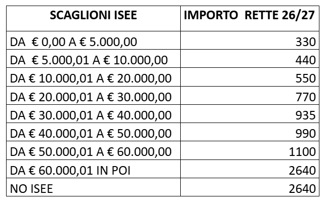 Di seguito le indicazioni per le rette dell’anno scolastico 2026/2027